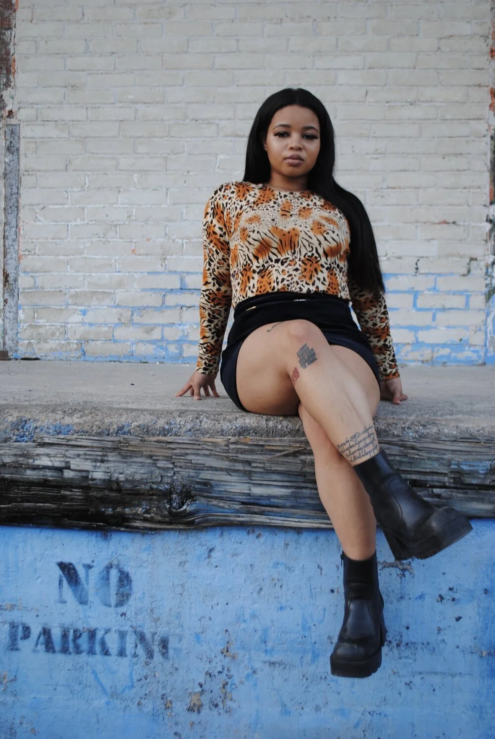 (Shot by @v1ntageware on Leah's Nikon D3000 on a warm evening in downtown Houston, Texas. She's rocking an 80s silk leopard print dress from @texan_folk & a ‘90s Steve Madden chunky boot, while smoking a Virginia Slim)