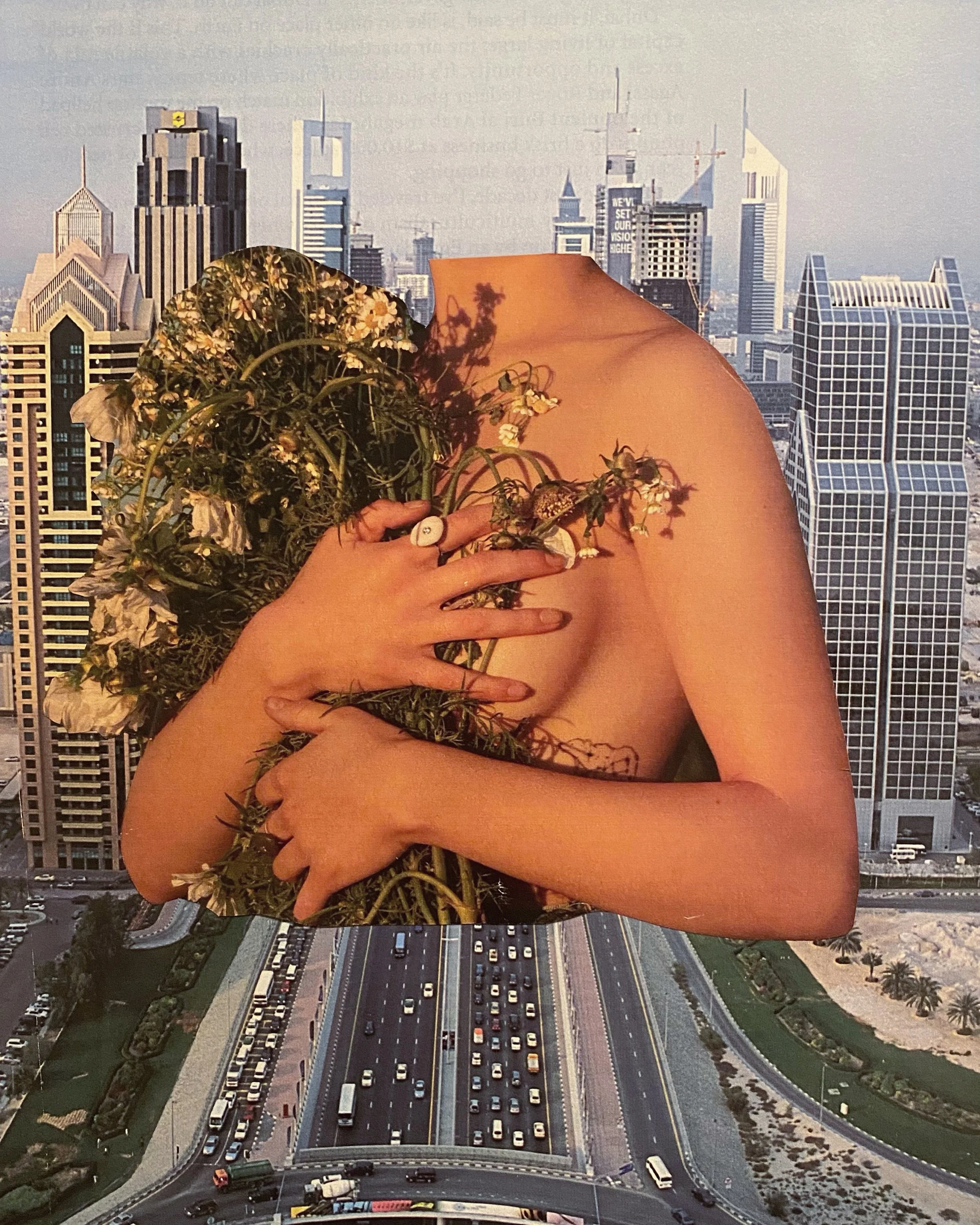 Analog collage artist Lindsey Uhl aka AlienMoonBaby resides in Portland, OR surrounded by moss, big trees, and radical momentous energy. Inspired by art therapy she began collaging at the beginning of the ~pandemmy~ and found the cut and glue process to be both cathartic and healing. Once she discovered the power of transmuting energy into tangible art there was no going back.