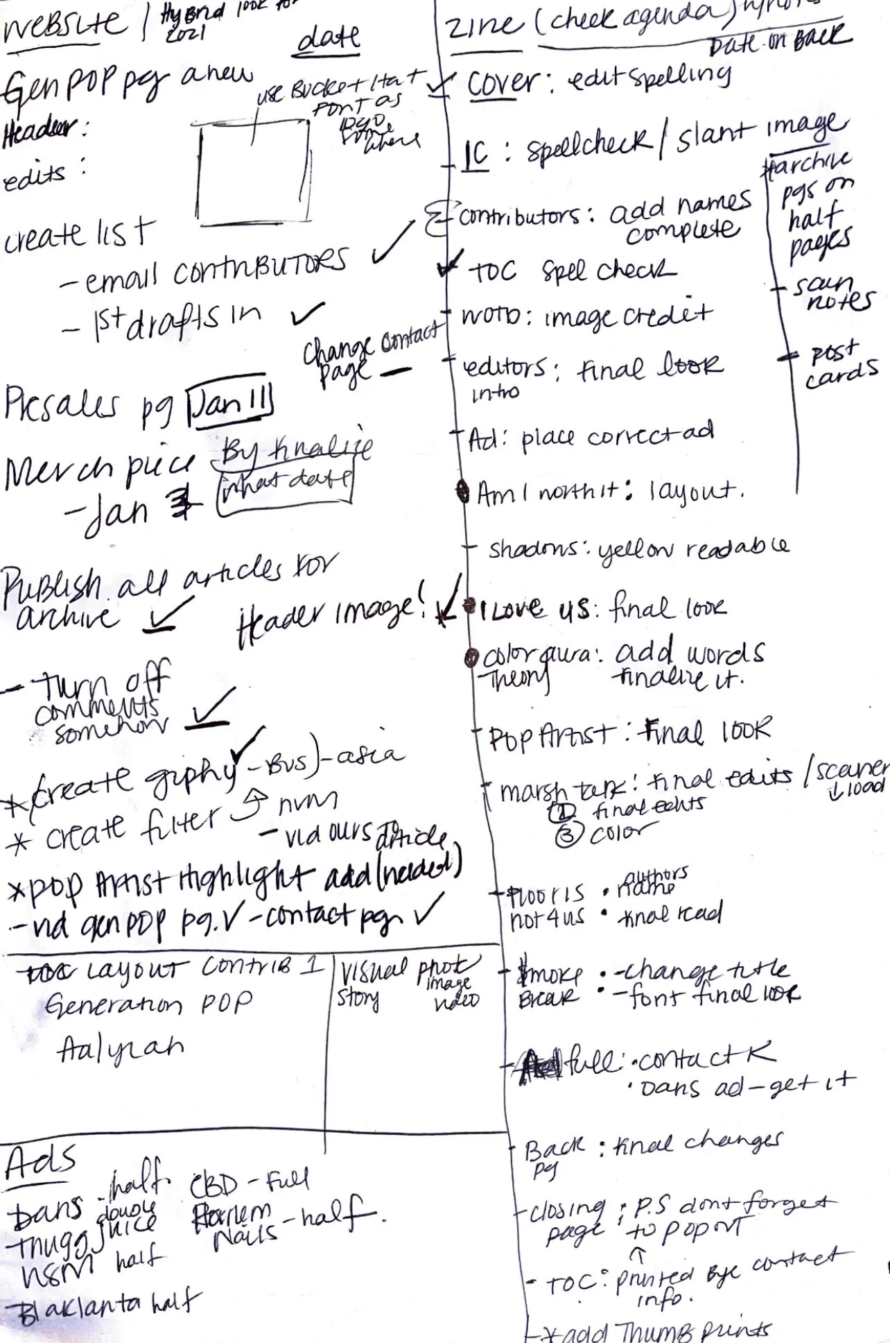 Welcome to the editors brain. Aalyiah Heath, the founder & editor shares her notebook pages that lead up to the print of the zine.